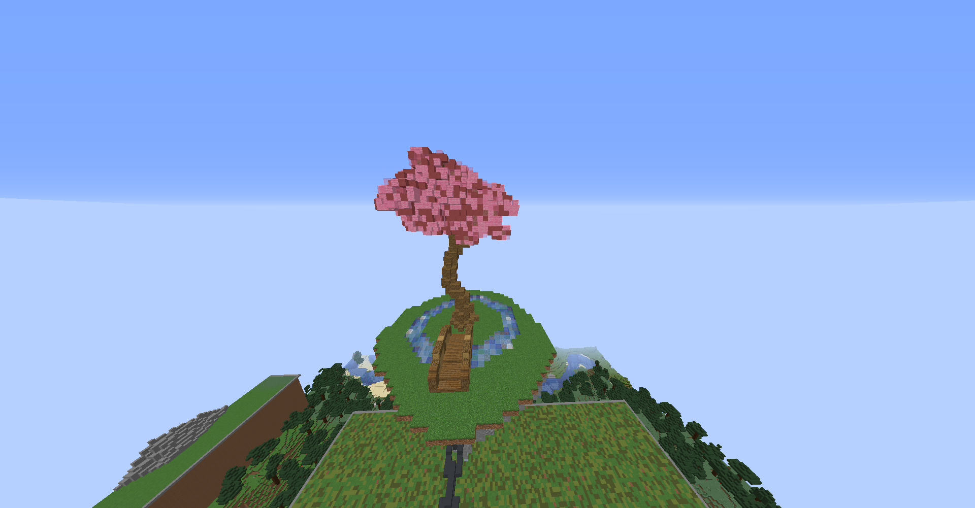 It would look great if, on the stone mountain, you added dirt and grass on top by selecting the mountain and doing //naturalize (if you use WorldEdit).