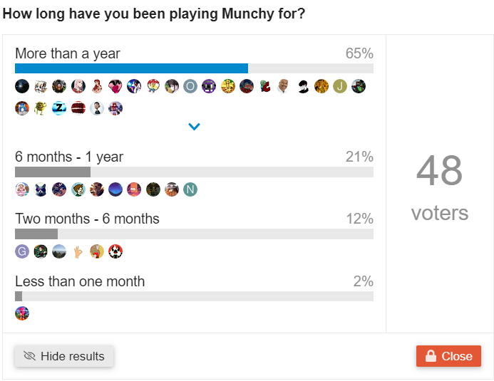 I see your dilemma with the questions now… Maybe like favorite rank from the Munchy store?